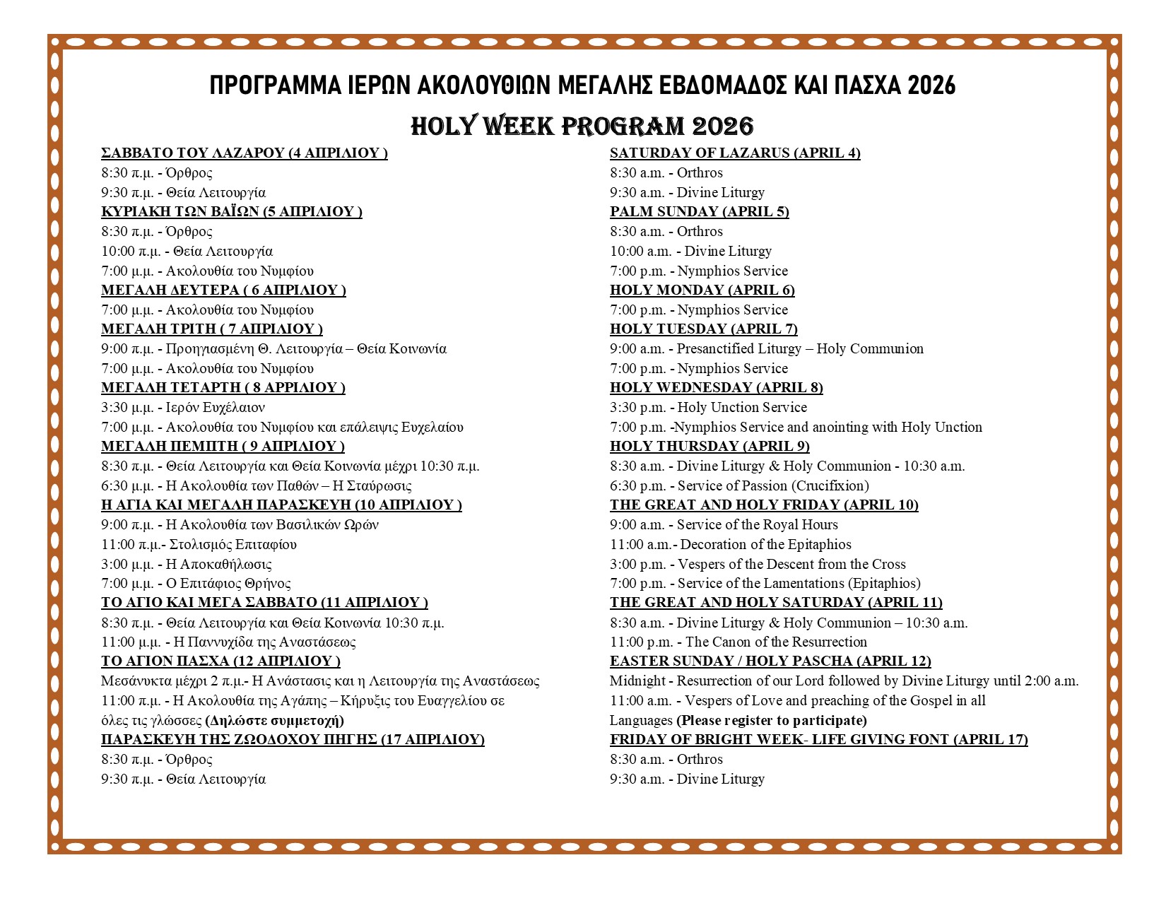 HOLY WEEK SCHEDULE
